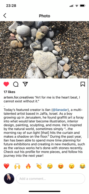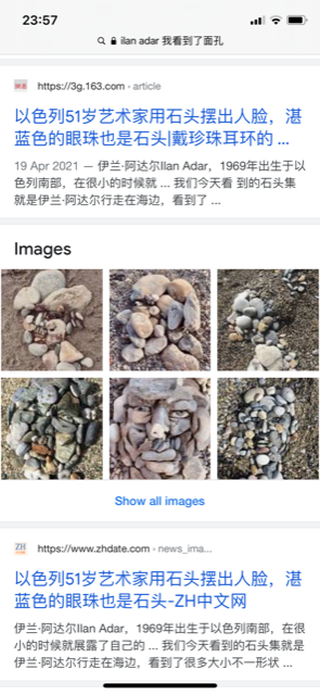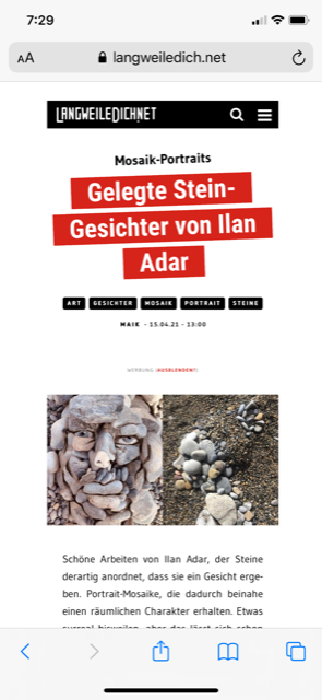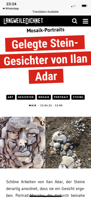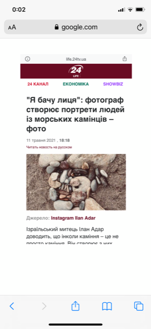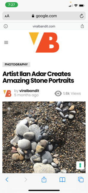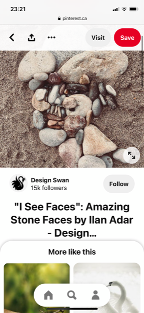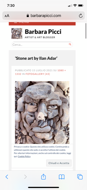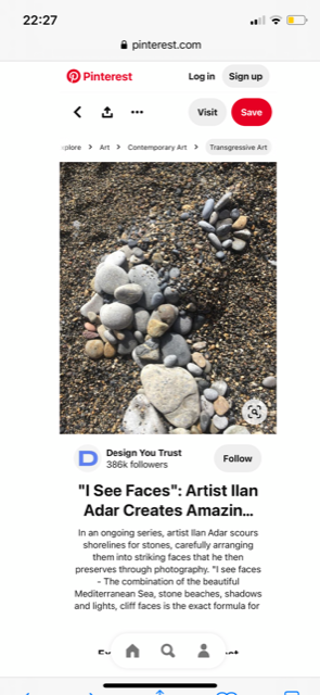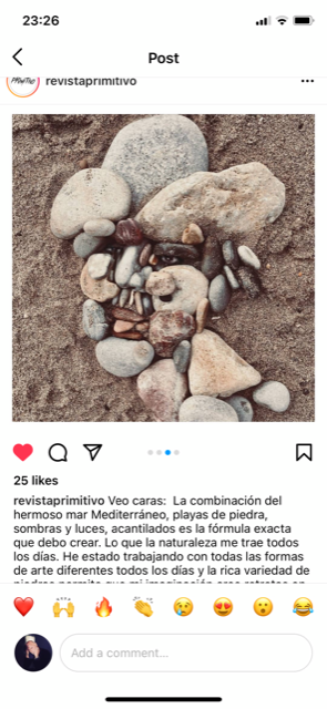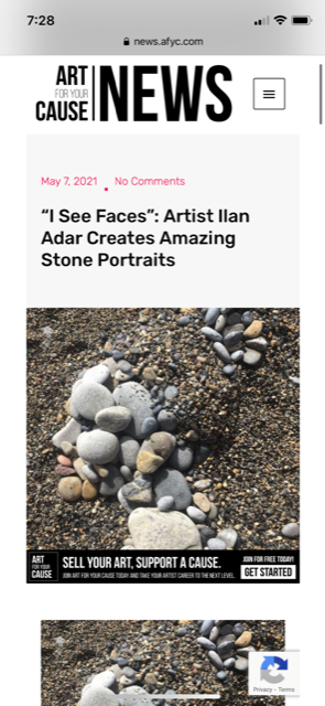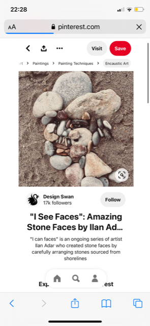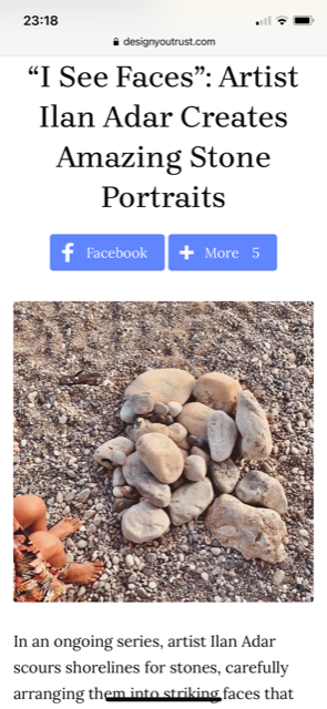 I see faces – The combination of the beautiful Mediterranean Sea, stone beaches, shadows and lights, cliff faces is the exact formula for me to create. What nature’s brings to me everyday. I’ve been working with all different art forms everyday and the rich variety of stones allows my imagination to create stone portraits like this.