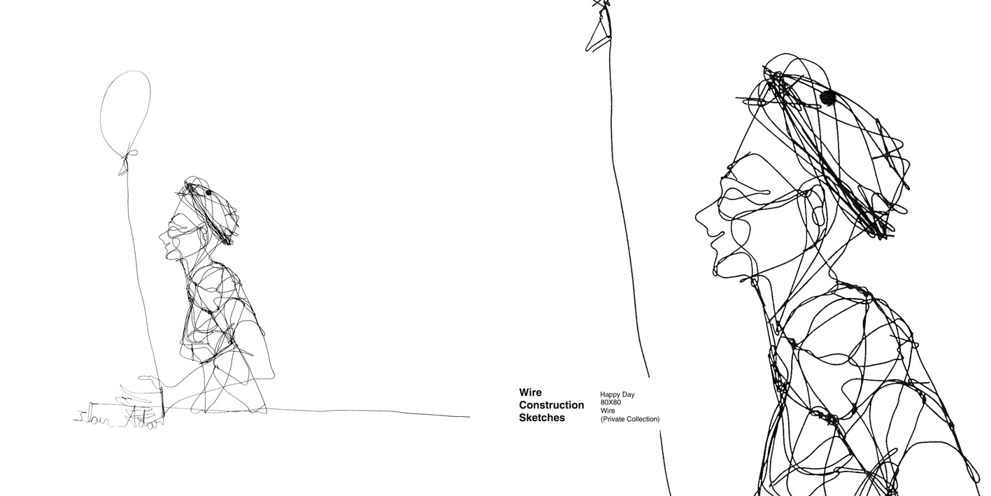 Happy Day - 80cm x 80cm Wire construction sketch on canvas.